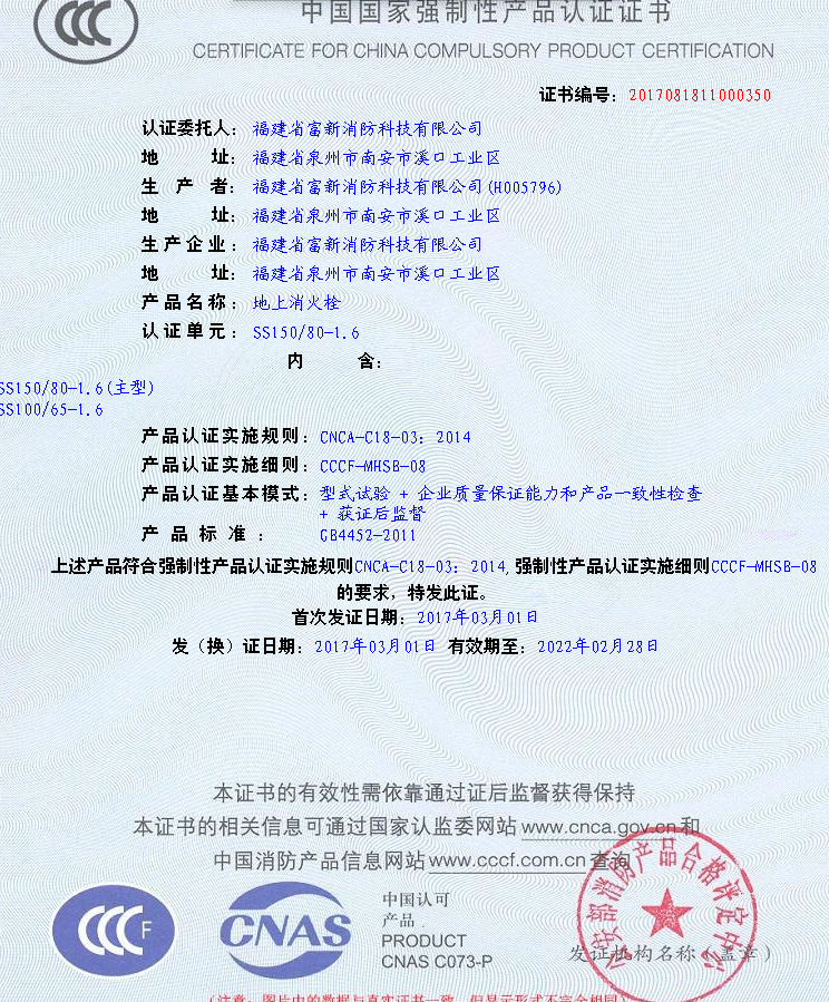 室外地面消火栓是設置在建筑物外消防給水管網上的給水設施。主要用于消防車從市政給水管網或室外消防給水管網取水滅火。也可直接與水龍帶、水槍連接滅火。它是撲滅火災的重要消防設施之一。最具代表性的SSFT系列室外消火栓是在普通消火栓的基礎之上對關鍵部位進行了改進,使其性能和適用范圍有了很大的提高。這種消火栓性能穩定可靠,操作簡單靈活,維護方便,能實現快速開啟和調壓,滿足各種消防場所的需要。